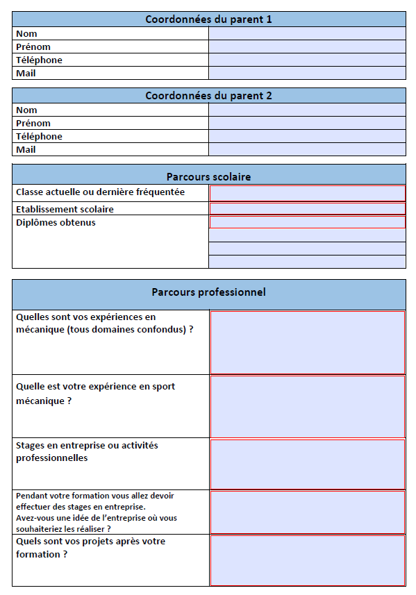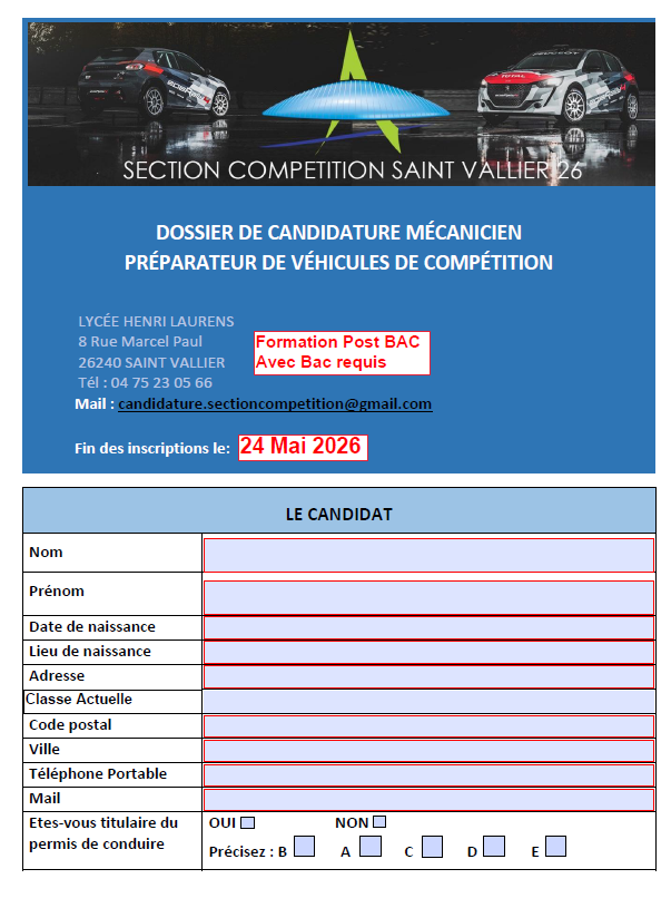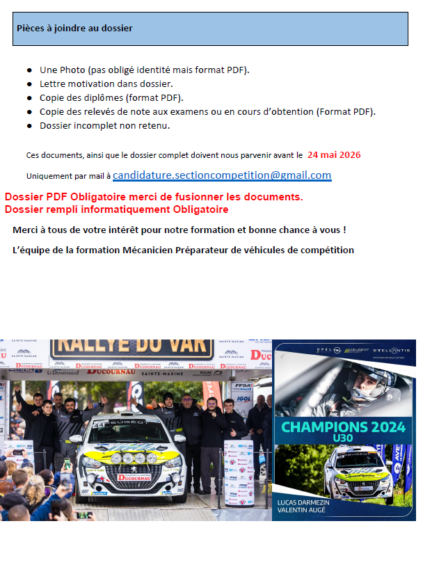 ATTENTION IL FAUT RETOURNER LE DOSSIER DE CANDIDATURE